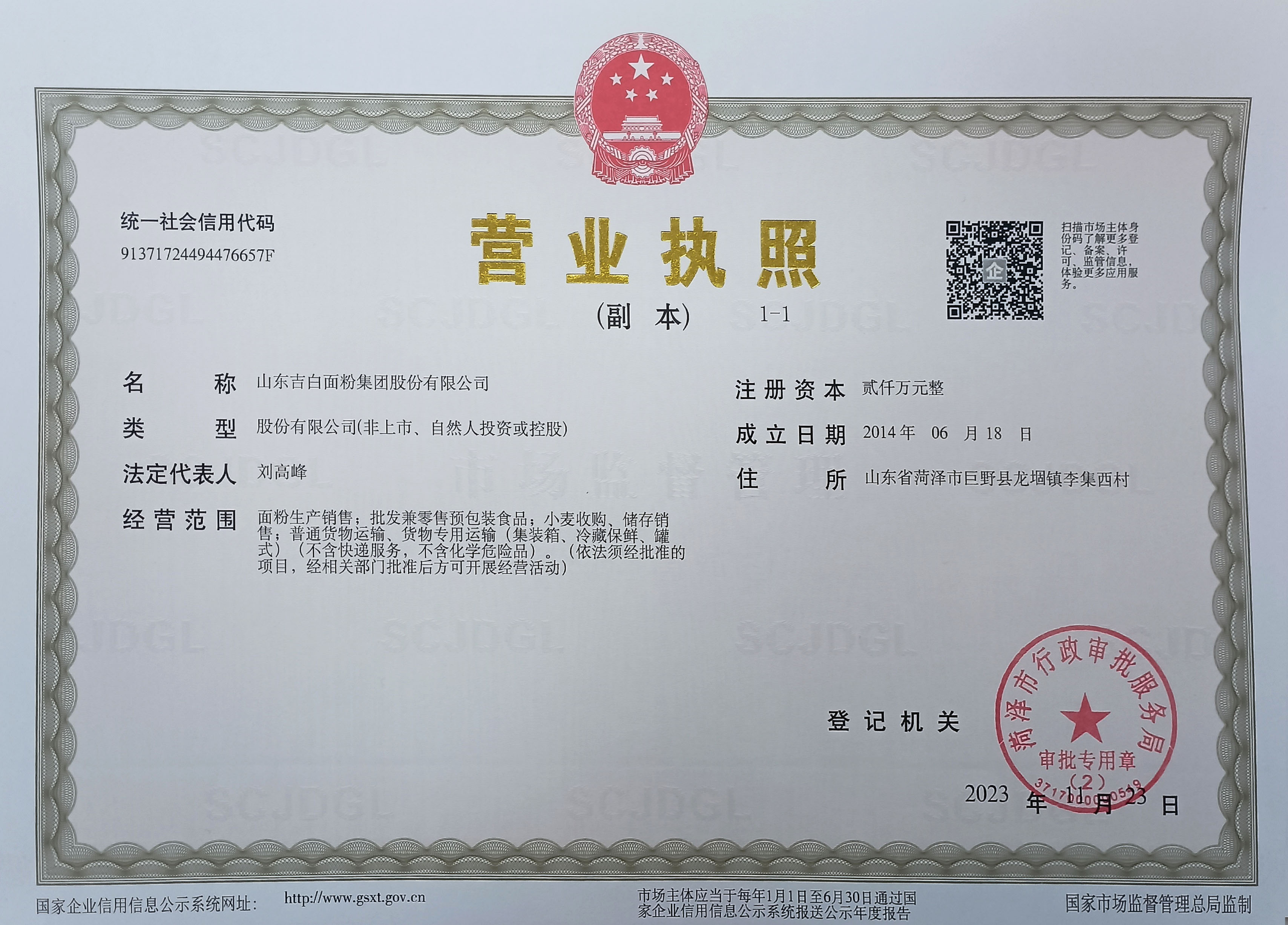 山東吉白面粉集團(tuán)——山東佰嘯制粉有限公司獲評(píng)“菏澤市2023